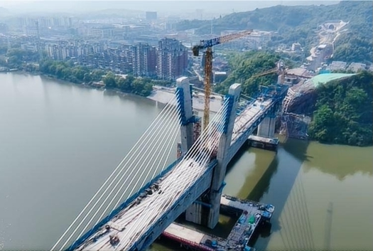 新安江特大橋位于浙江省建德市境內該橋全長885.2米,跨越寬度為520米的江面,采用主跨為216米的矮塔斜拉橋設計,是目前國內跨度最大的墩塔固結、塔梁分離式雙塔雙索面半漂浮體系矮塔斜拉橋,技術難度與施工精度要求極高。大橋共設4個主塔,36根斜拉索,最長索長達200米,是金建高鐵重難點工程和標志性工程,也是全線施工難度最大的橋梁控制工程,現(xiàn)已完成中跨合龍全橋貫通。